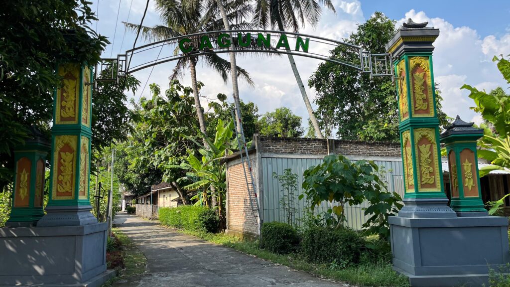Mula bukane dijenengi Cagunan amerga kang dadi cikal bakal lan bebadra ing wewengkon kono yaiku Ki Coguna lan Nyi Coguna. Manut dongenge para sepuh ing padukuhan Cagunan nalika Majapahit kalah perang mungsuh Demak, akeh para prajurit kang keplayu. Salah sakwijining prajurit numpak prau nurut ilining kali Progo, tekan pinggir alas praune mung muter wae ora mlaku merga banyune ngligeng. Prajurit kang aran Coguna banjur minggir lan percaya menawa lelakon mau mratandani dheweke kudu babad alas ing kono.